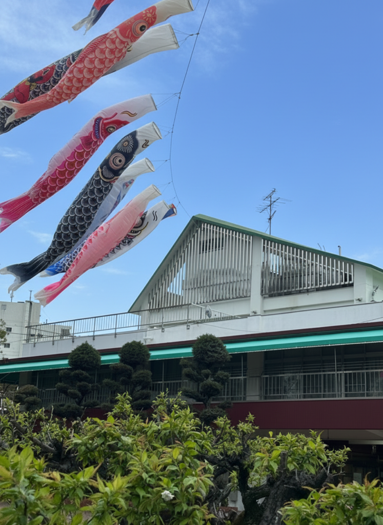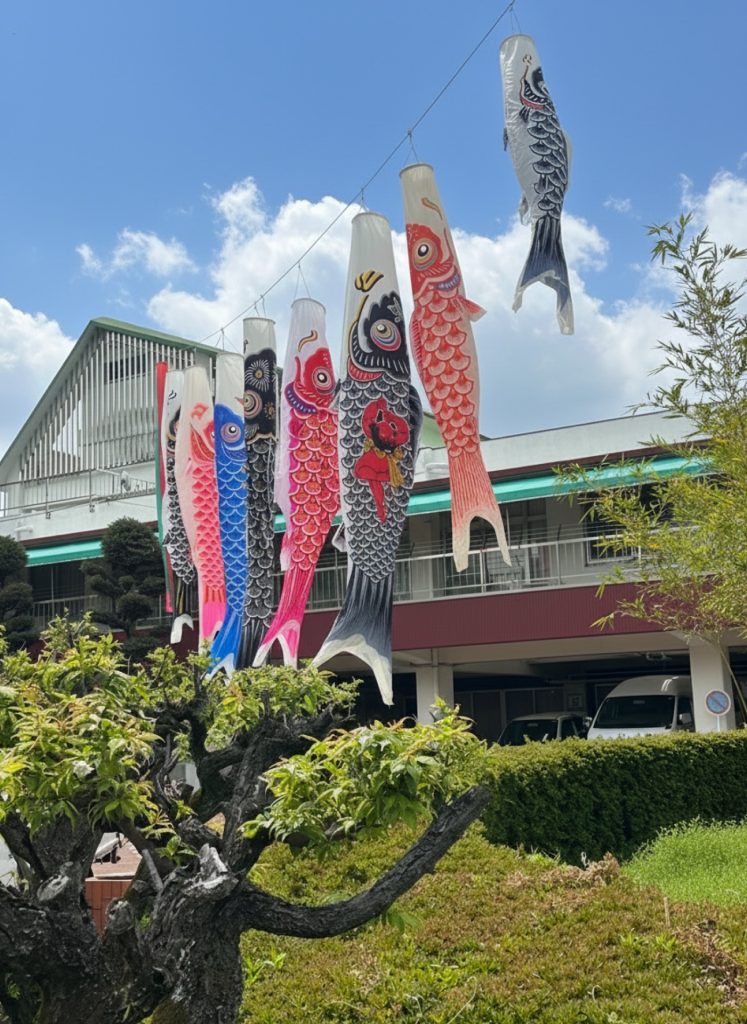 今年も施設内に鯉のぼりが気持ちよく泳いでいます。お天気が良いときは見ている私たちも元気をもらえます。